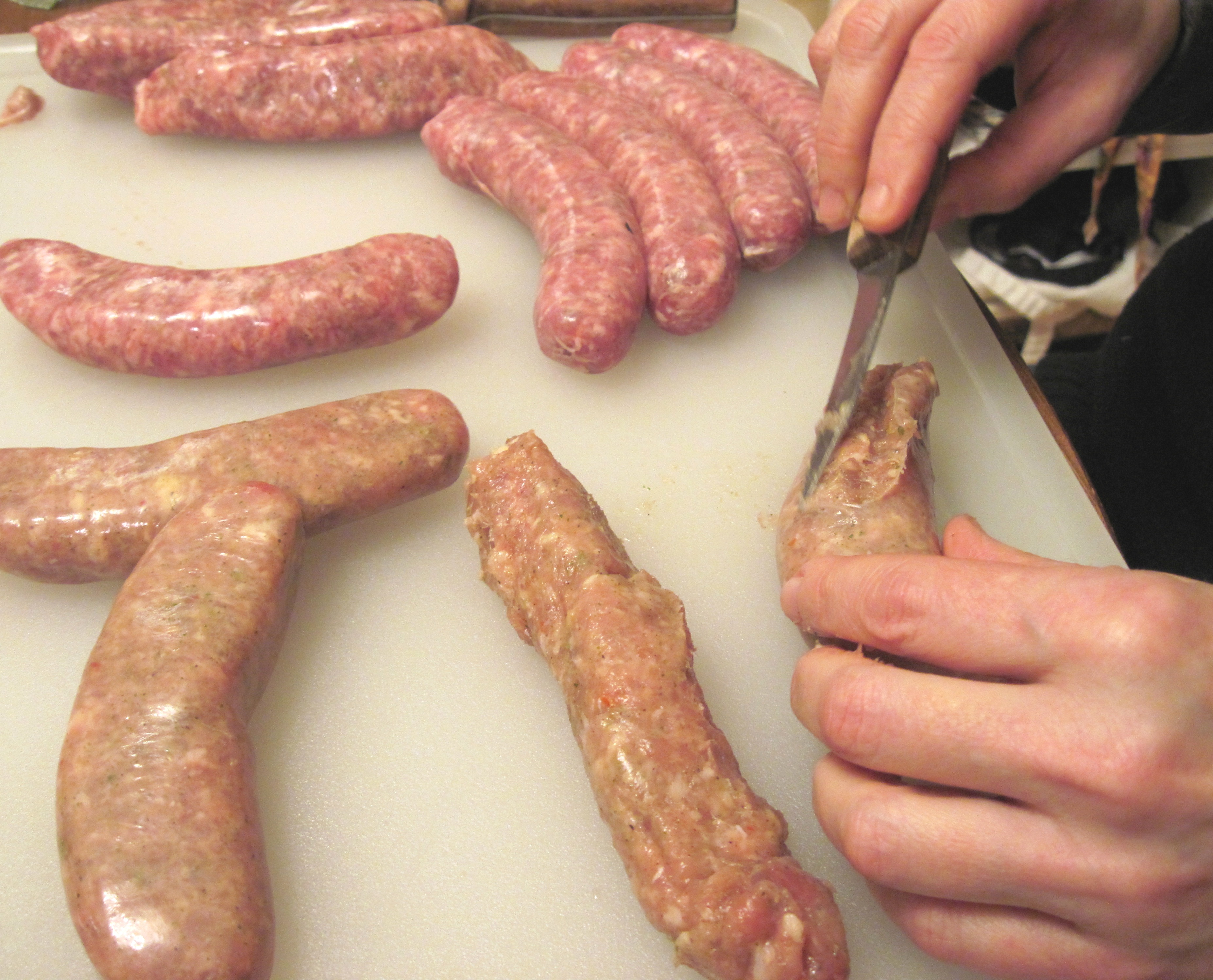 Joan volunteered to remove the casings from the sausage and chop it up. (Thank you, Joan!)