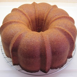David cautions to use a light-colored Bundt pan because “a dark one will turn out a cake that sticks and is unpleasantly brown.” My Bundt pan is medium-colored and has a non-stick coating. It worked for me.