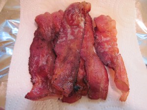 5 pieces of Coleman (no nitrates) bacon (4 for Bob, 1 for me)