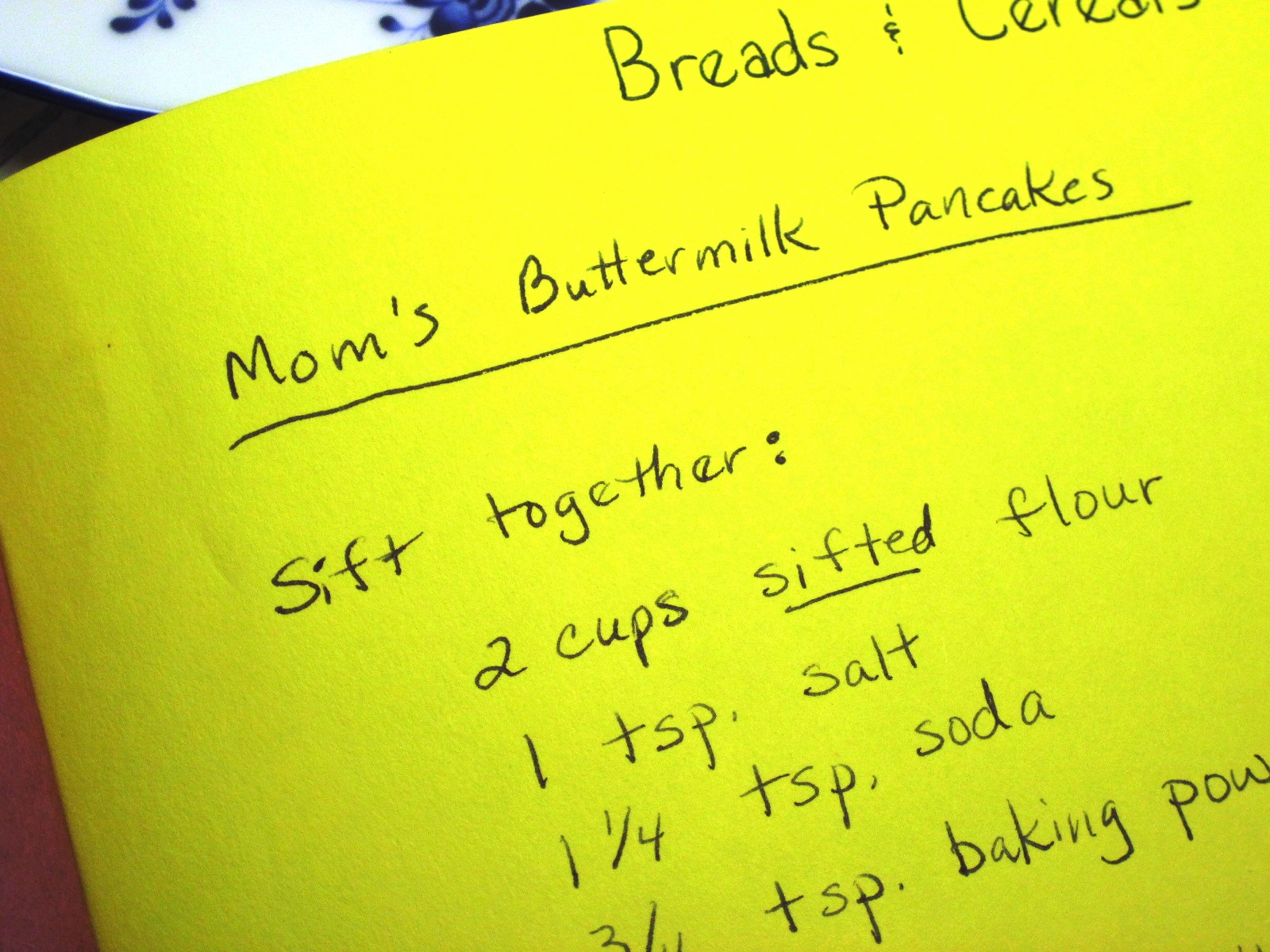 You’ll notice in the photo of my hand-written recipe that it calls for sifted flour. I find that sifting the flour is an unnecessary extra step. Mom did sift her flour, but I haven’t done that for years.