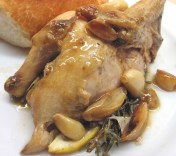 Cut the hens in half lengthwise and serve with the sauce and garlic.