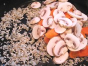 The salvaged rice, and the carrots, mushrooms and chicken were still delicious. This is a very easy one-pot dinner.