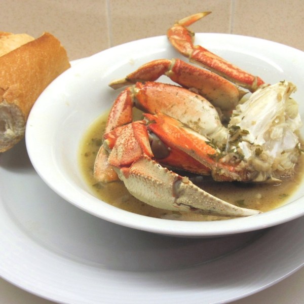 Crab Vermouth is one of our favorite recipes from Sunset’s Cooking for Two…or Just for You. The crab is simply heated up in a buttery broth and served with hot French bread for dunking.
