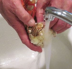 To best preserve the crab’s freshness, I’ve read it’s best to clean it just before you use it; instructions follow the recipe. If you’d rather not do it yourself, however, they’ll be happy to do it for you at your seafood shop. Truthfully, you’ll probably not notice the difference.