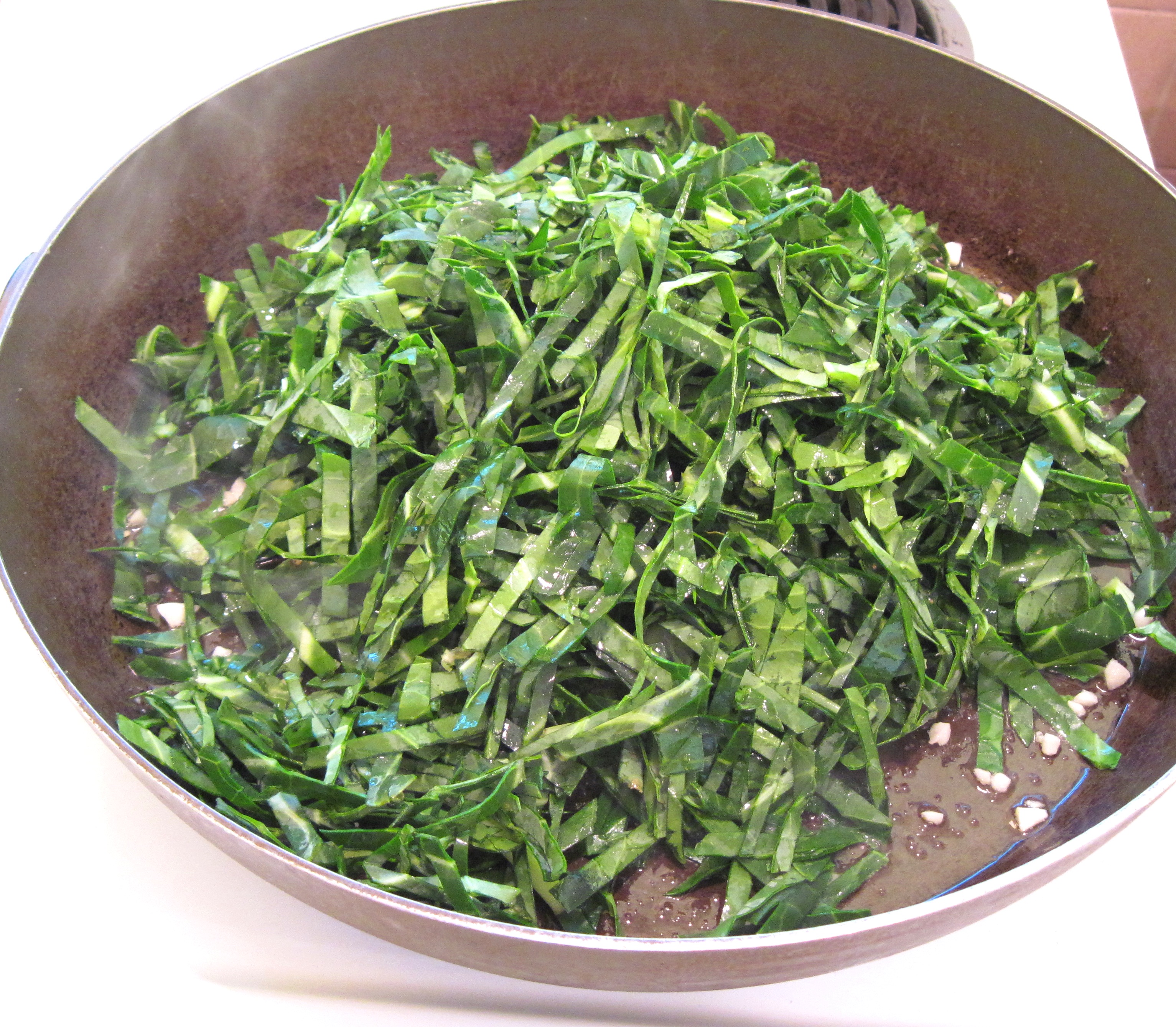 (10 ounces will look like a lot of greens for two people, but they cook down a lot.)
