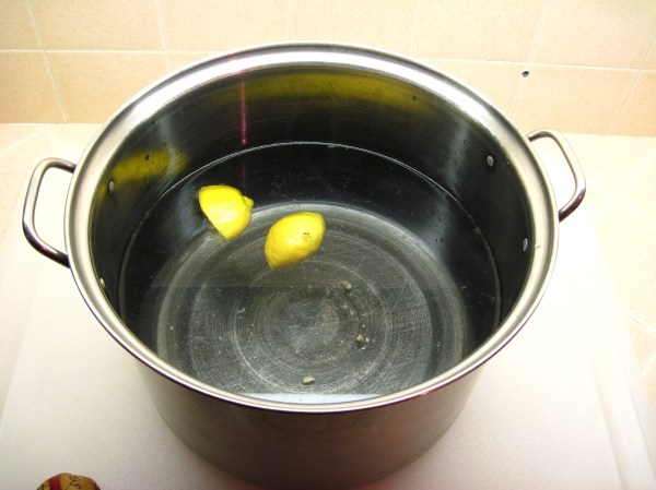 Cut a lemon in half and squeeze the juice into the pot of water for the corn. Then toss the lemon halves in the water.