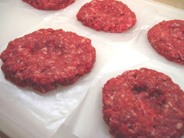 Shape the beef into patties about 3/4-inch thick. (I like to make them on squares of wax paper. It makes it easy to transfer them to the grill.) With 1½ pounds of beef, you can make four 6-ounce burgers or six 4-ounce burgers. (Using my kitchen scale, I actually made two manly 6-ounce burgers and three daintier 4-ounce burgers.)
