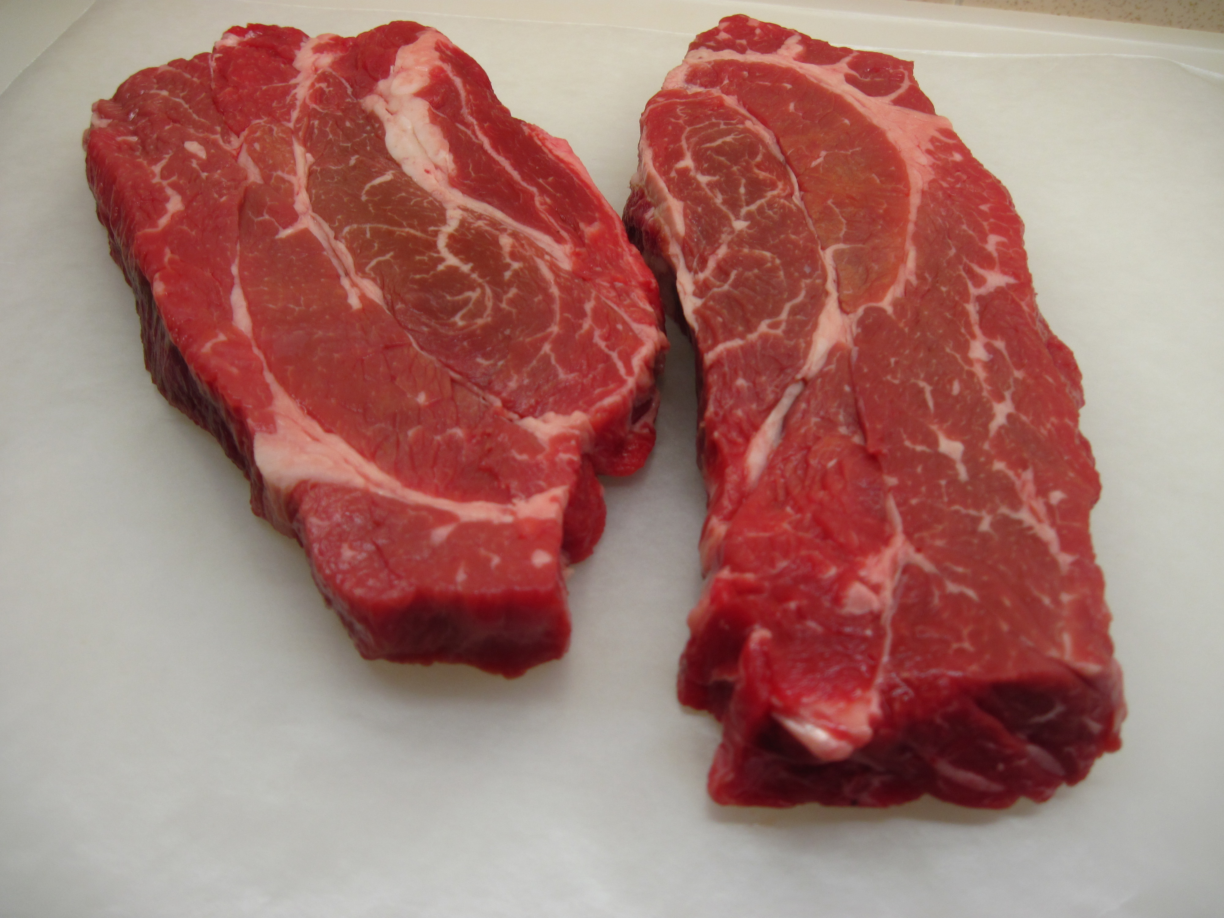 You do not want to get the leanest cut of beef. Hamburgers need some fat. You can use chuck roast or chuck steaks. I found 1½ pounds of chuck steak; that was precisely the amount of meat I wanted.