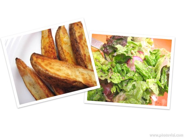 11. Put the burgers together; take the potatoes out of the oven and serve them with the burgers.