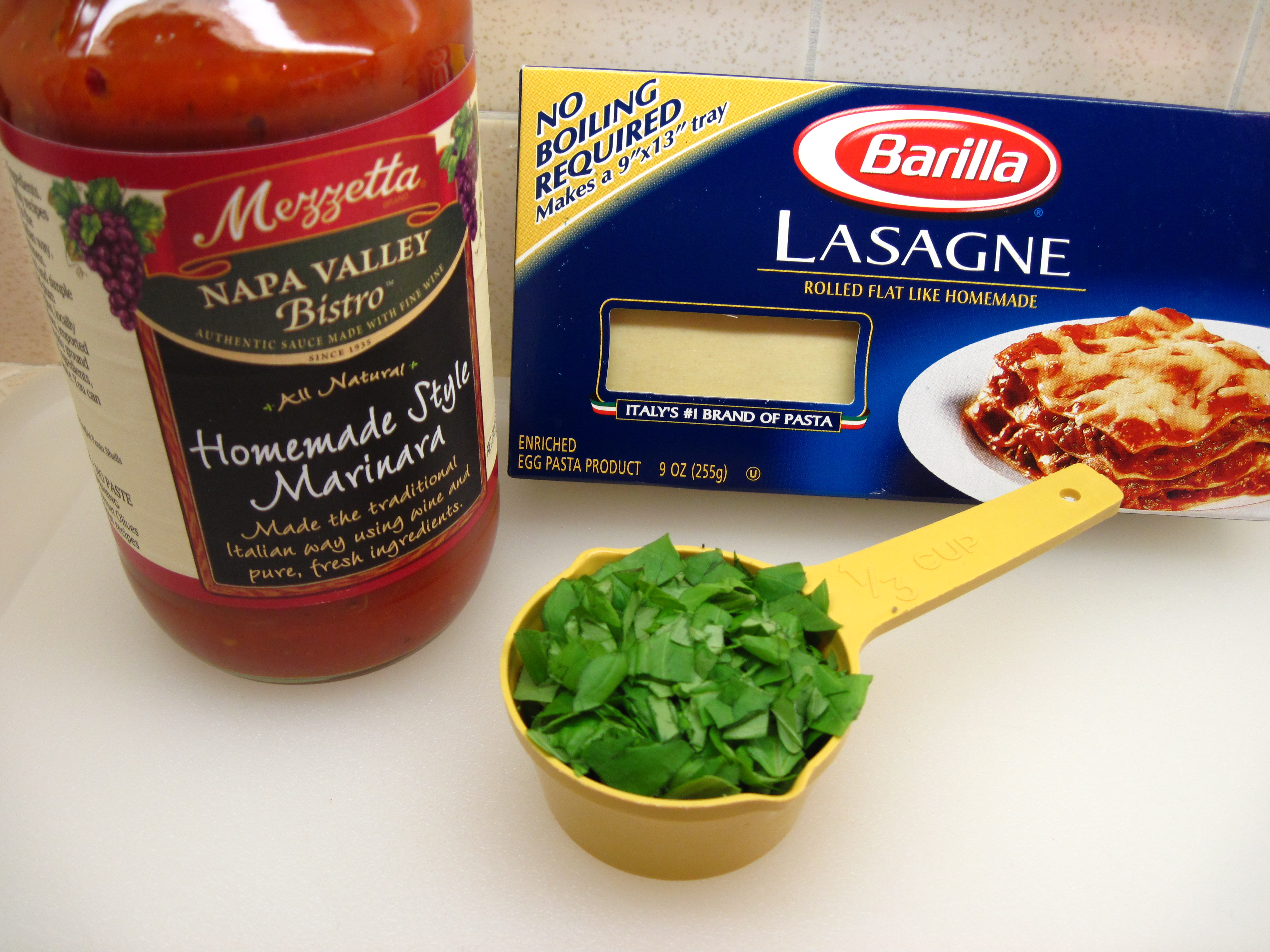 So start with a great pasta sauce and use Barilla’s No-Boil Lasagna, which is “rolled flat like homemade”. It is the best no-boil lasagna I’ve ever tried.