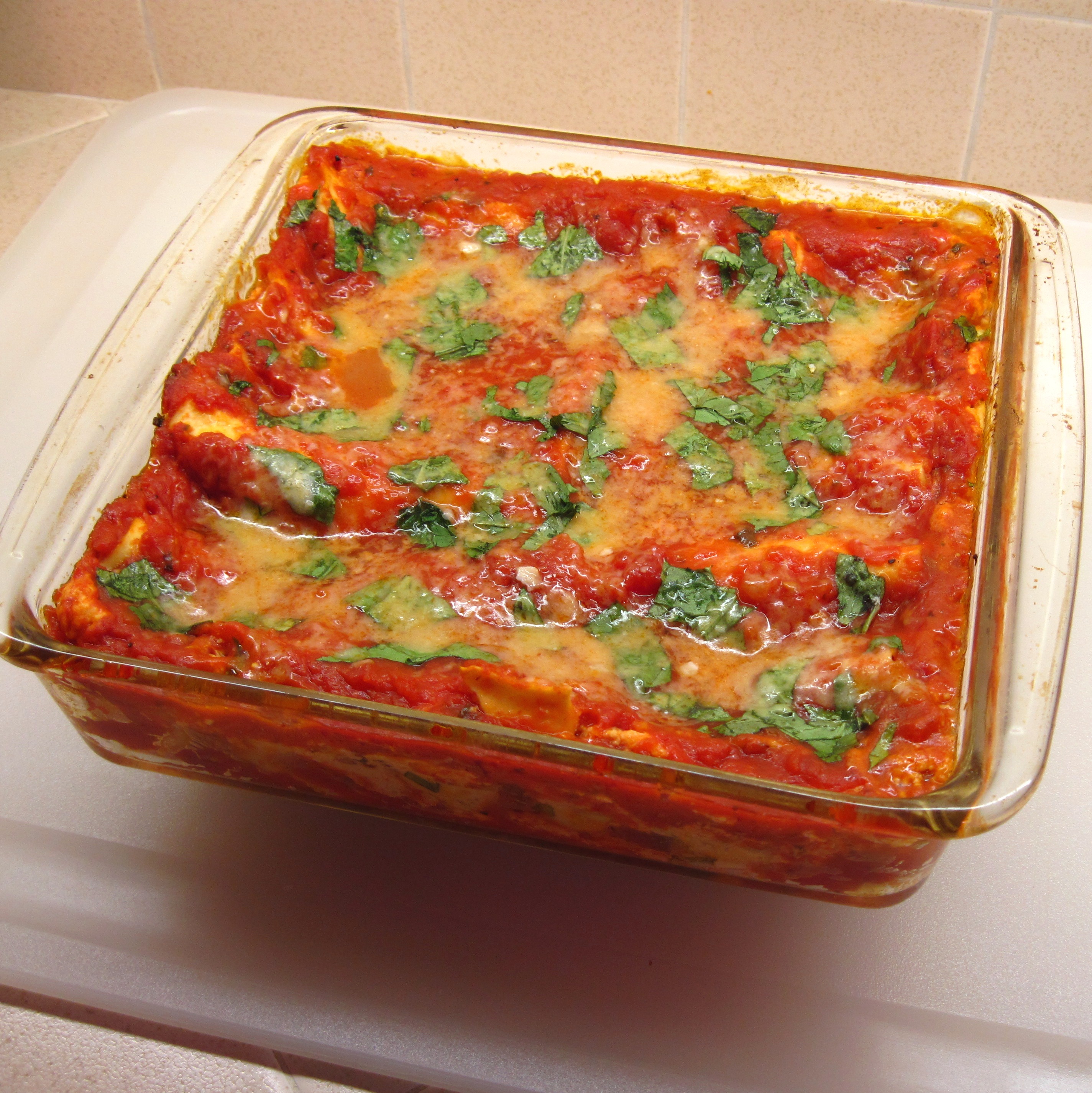 8. Top the ricotta mixture with another ¾ cup of tomato sauce.