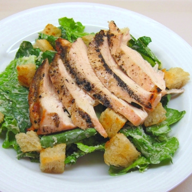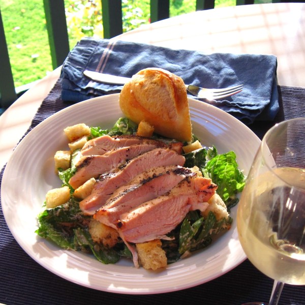 Caesar Salad fortified with some kind of protein makes a great summertime dinner. Popular choices to top the salad are grilled salmon, smoked salmon, fried oysters, shrimp or chicken. Last night I made it with grilled chicken.