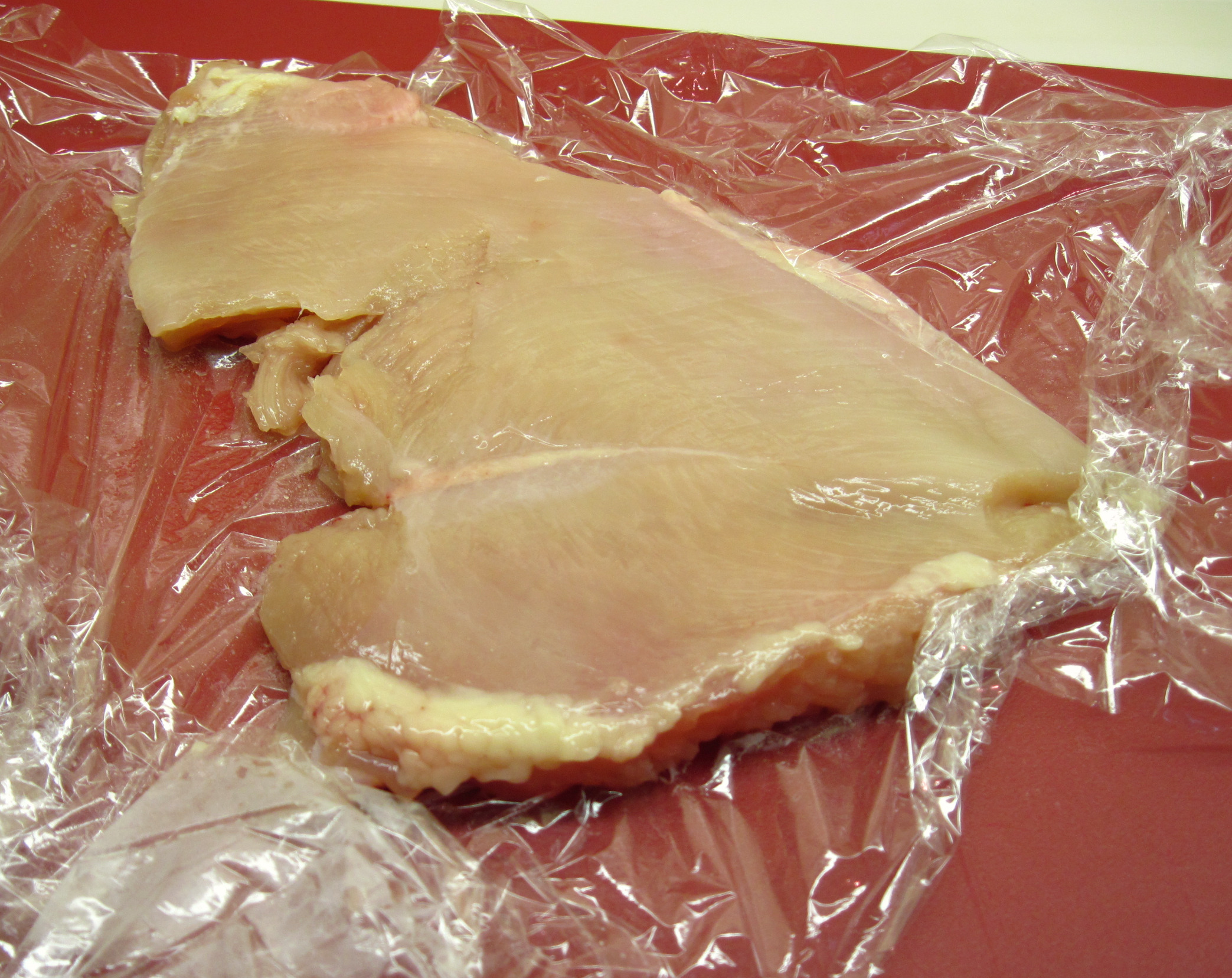 ¾ pound chicken breast (1 large breast), pounded to about ½-inch thick