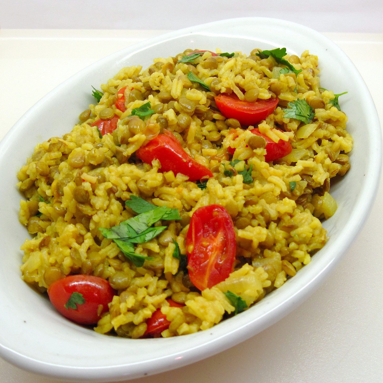 Indian-Spiced Rice With Lentils is a quick and easy one-pot dish that makes a delicious vegan main course; it would also be a great side dish for grilled meat….perhaps a Tandoori-style Chicken?