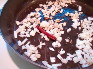 4. Add the cinnamon, cloves, and cumin seeds and cook for about 2 minutes.