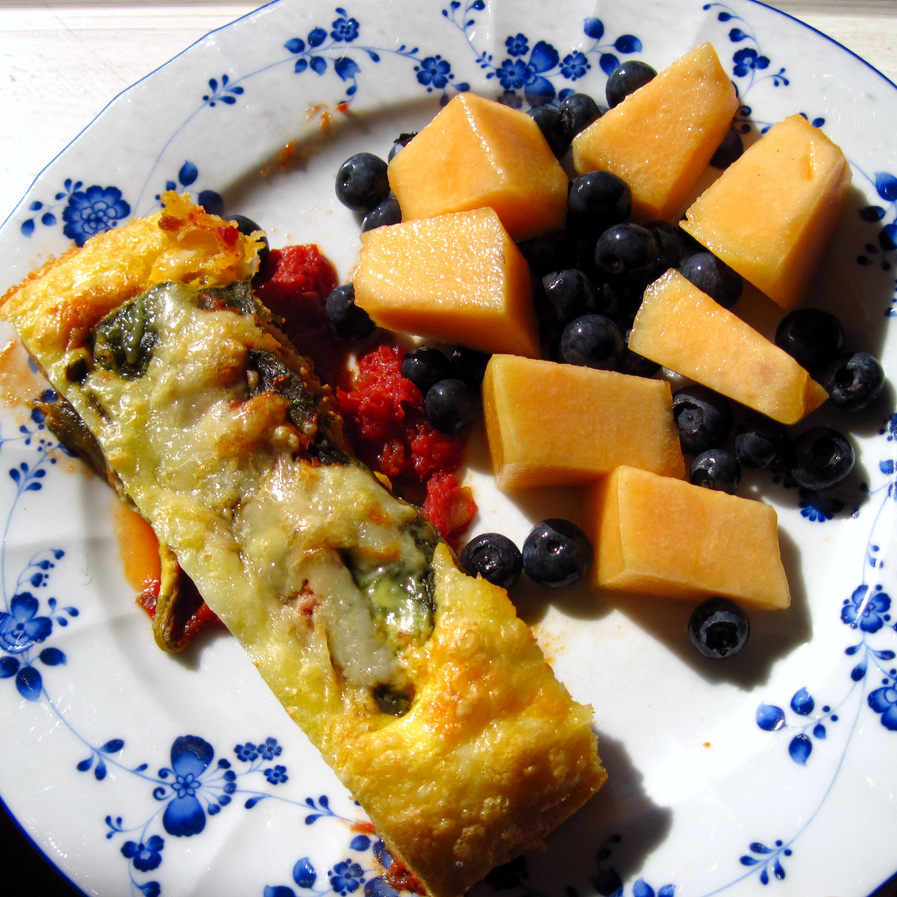 This morning I heated up 2 leftover chiles and served them with cantaloupe and blueberries. It was a fantastic breakfast for a hot Sunday morning.