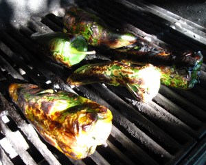 I had never used fresh poblano chiles before, but Elise gave very simple instructions for charring them to get them ready for the recipe. I used my gas grill, but you could use your broiler if you don’t have a grill.