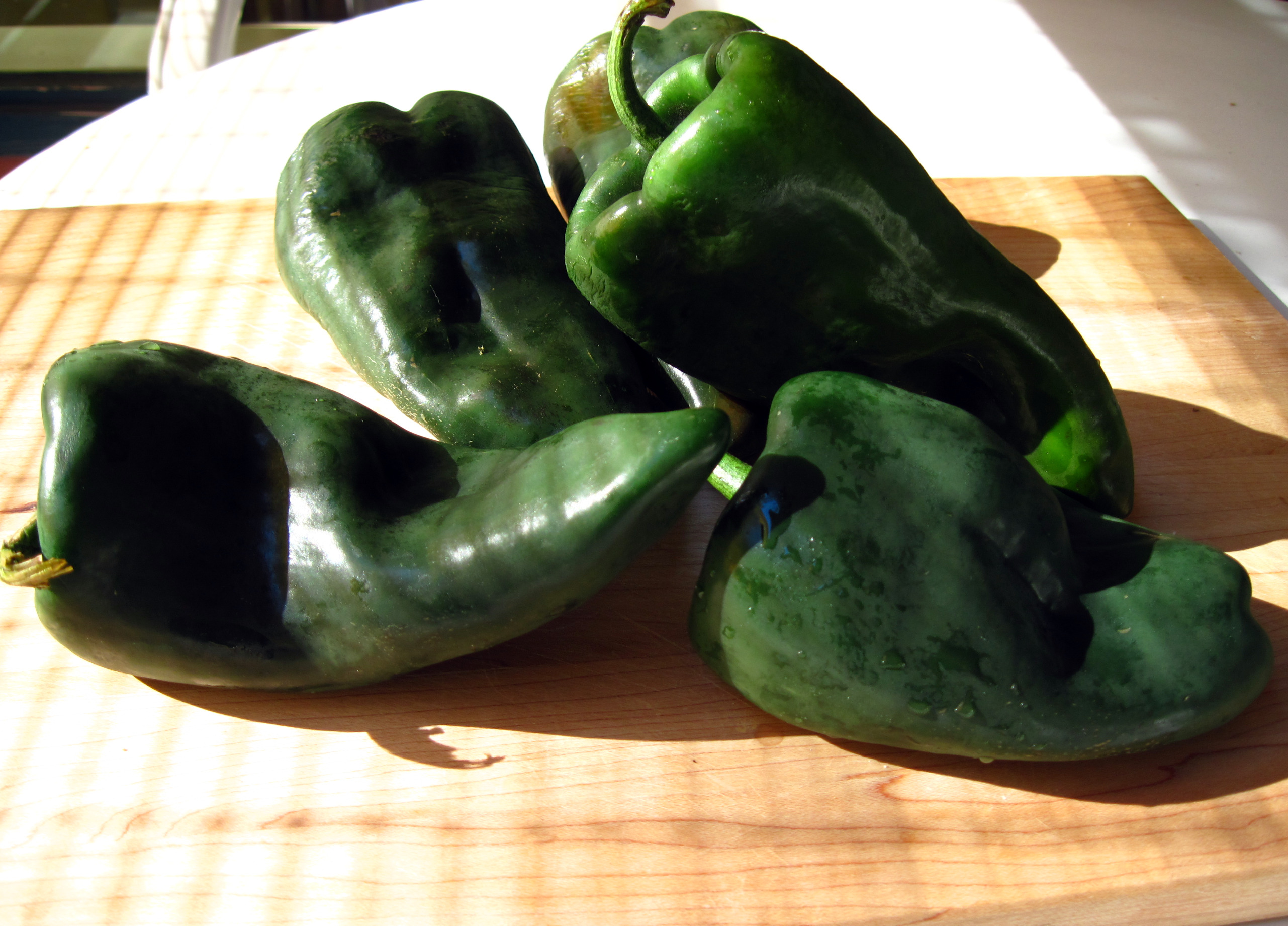 We ended up carrying 5 poblano chiles five more days on our road trip. Fortunately, they were very fresh when we bought them and they survived the trip just fine.