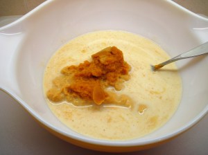 3. Stir the pumpkin and evaporated milk together in a large bowl.