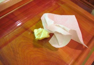 5. Put 1 tablespoon of butter in a large casserole and spread it around with a paper towel.