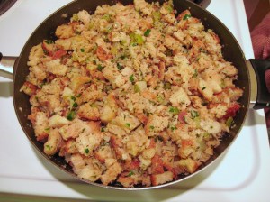 (Adapted from the recipe on the bag of Grand Central Baking Company’s Rustic Stuffing)