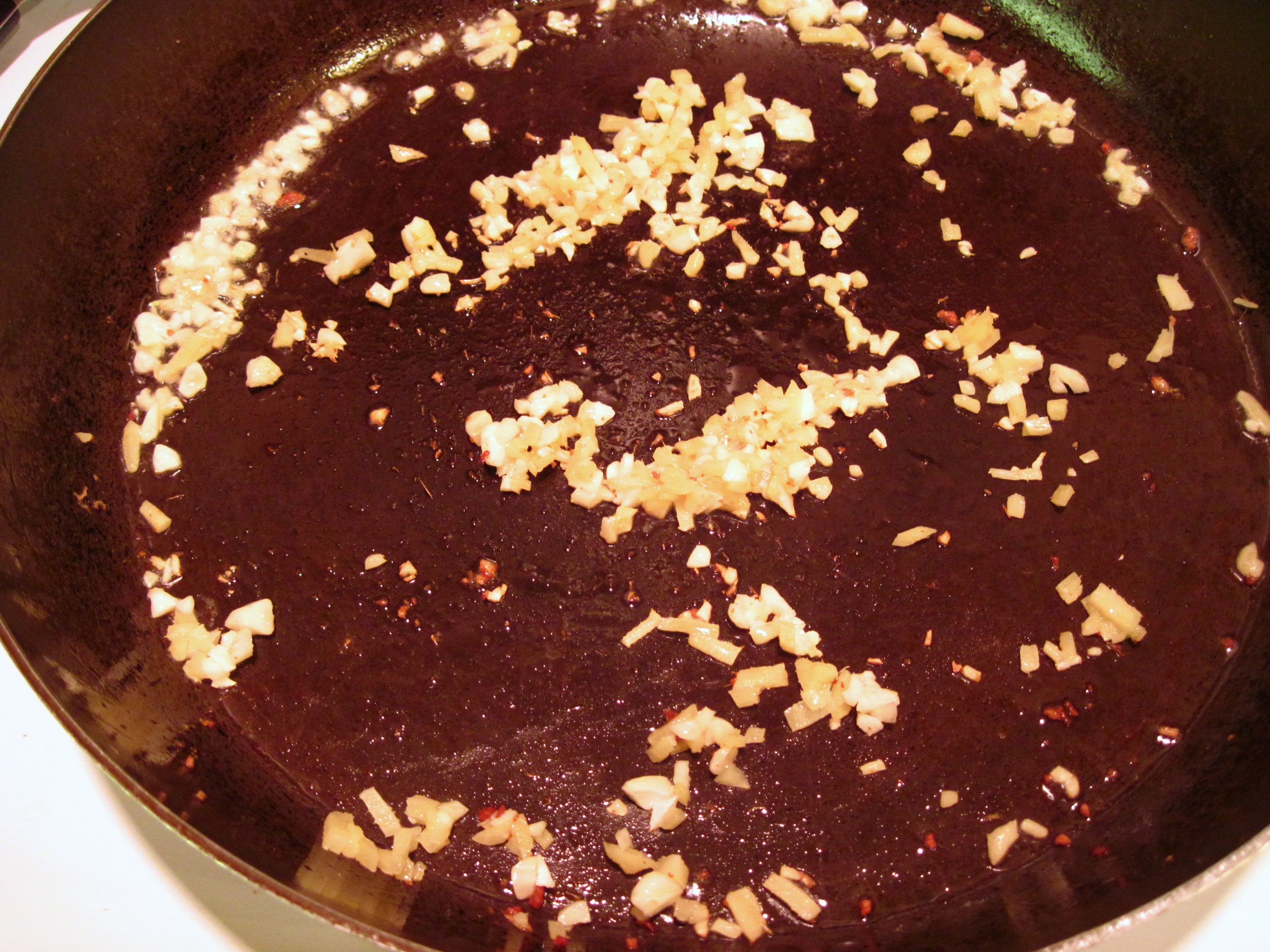 3. Turn the heat down to medium-low. Add the garlic and ginger to the pan. Cook, stirring, for about 1 minute.