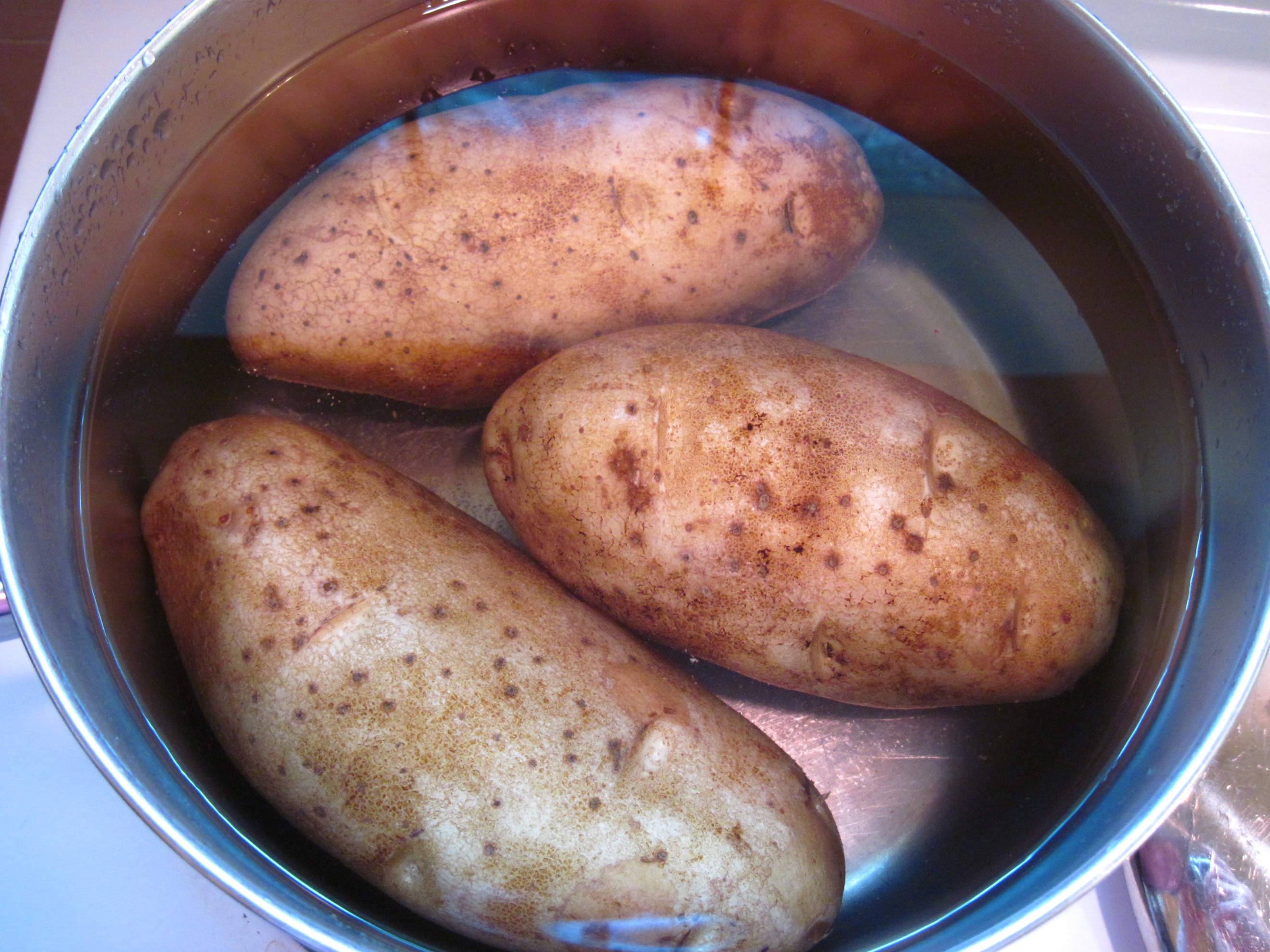 1. Scrub the potatoes. Put them in a pot and cover with water.