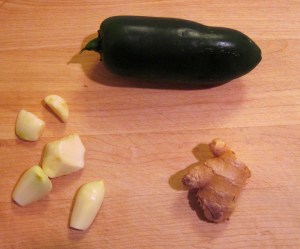 1. Mince the jalapeno pepper, ginger, and garlic, and set aside. (Scrape the ginger with a spoon to remove the peel.)