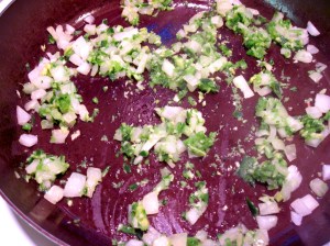 4. Heat the oil in a large skillet. Add the onions and cook, stirring occasionally, just until they soften, about 3 – 4 minutes.