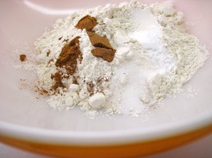 3. Mix flour, soda, salt, cinnamon and nutmeg in a bowl.
