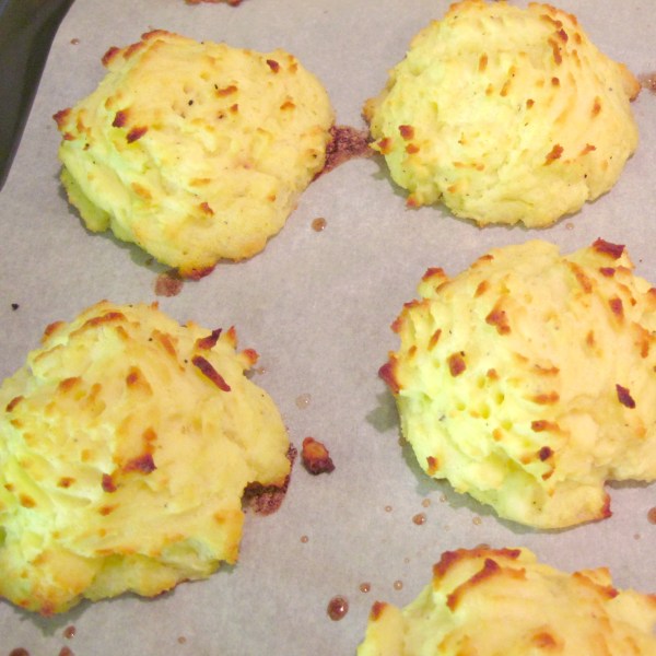 Ooh, I’ve never seen potatoes done this way! When I first read “duchess” and “potato” I thought — “Whaaaat? There’s no way a potato could ever be that fancy!” — but whadyaknow? They are totally fancy. 🙂