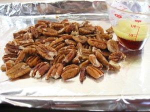 9. Roast the nuts on the upper oven rack for about 10 minutes, stirring a time or two during the roasting time. Let the nuts cool.