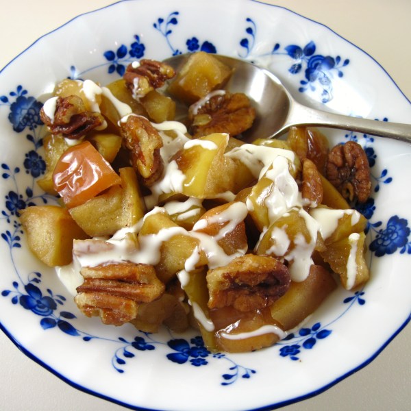 Molly suggested serving the apples with ice cream, which would be delicious. I decided to lightly sweeten some crème fraiche to drizzle on top. It worked for me!