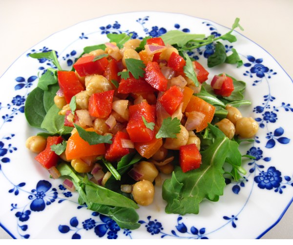 Served on a bed of arugula, I found Chickpea Salad with Ginger to be a refreshing and colorful salad to serve with a rich Indian main dish.