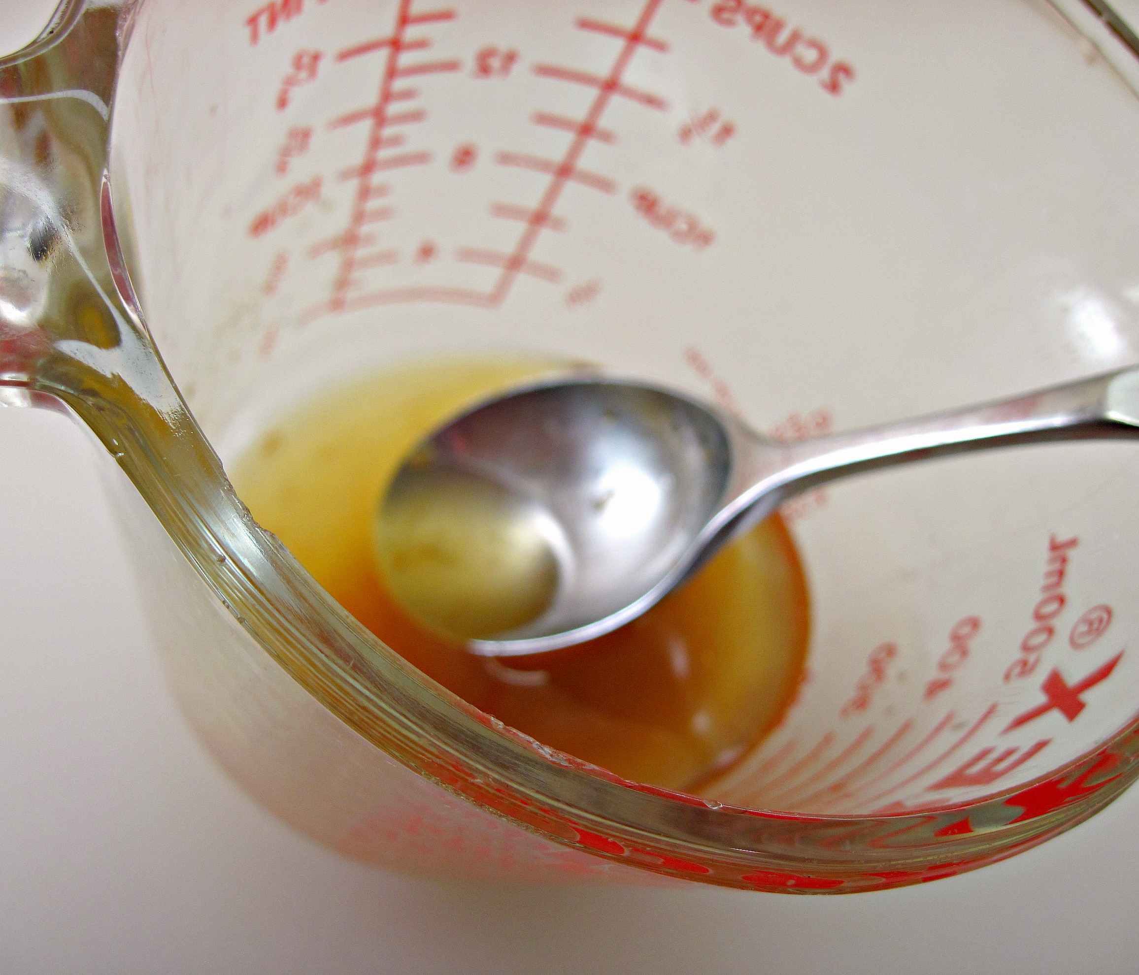 9. If you want to serve the chicken with the pan juices, pour the juices into a glass measuring cup. Let them sit for a few minutes to allow the fat to rise to the top.