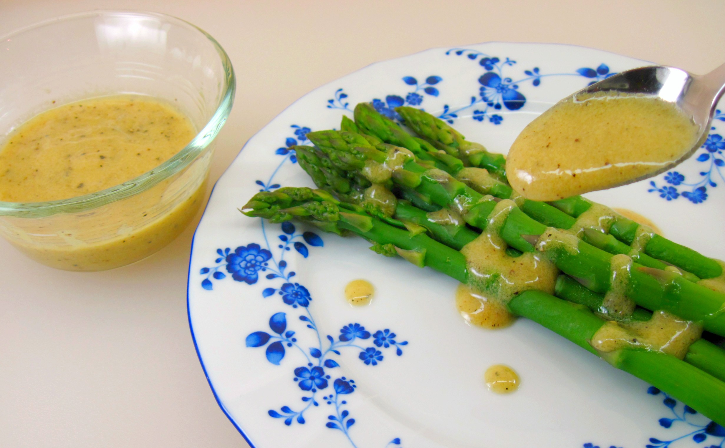 I quadrupled Jacques Pepin’s Asparagus in Mustard Sauce for Easter dinner, and it was a huge hit – especially the Mustard Sauce!