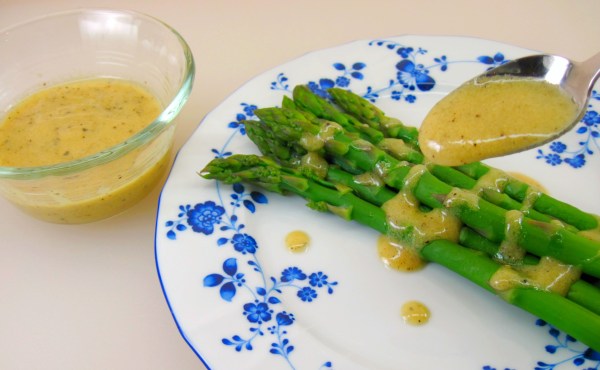 This sounds perfect. I love lightly cooked asparagus with a flavorful but simple dressing.