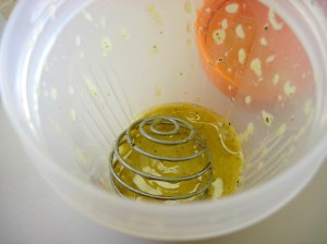 I put everything in my Blender Ball and gave it a few shakes and it was ready. If you don’t have a Blender Ball, put everything in a bowl and whisk it together. It doesn’t matter if it is not fully emulsified.