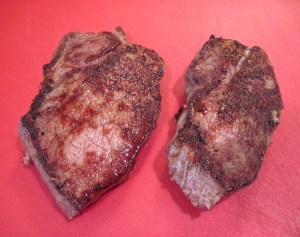 7. Turn the steak, and cook for another 3 minutes. (This gave us rare steak, just the way we like it. Cook a bit longer for medium-rare or medium.)