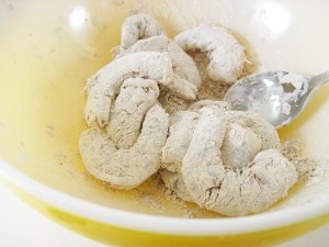 4. Add the shrimp to the cornstarch mixture, and stir until it is well-coated.