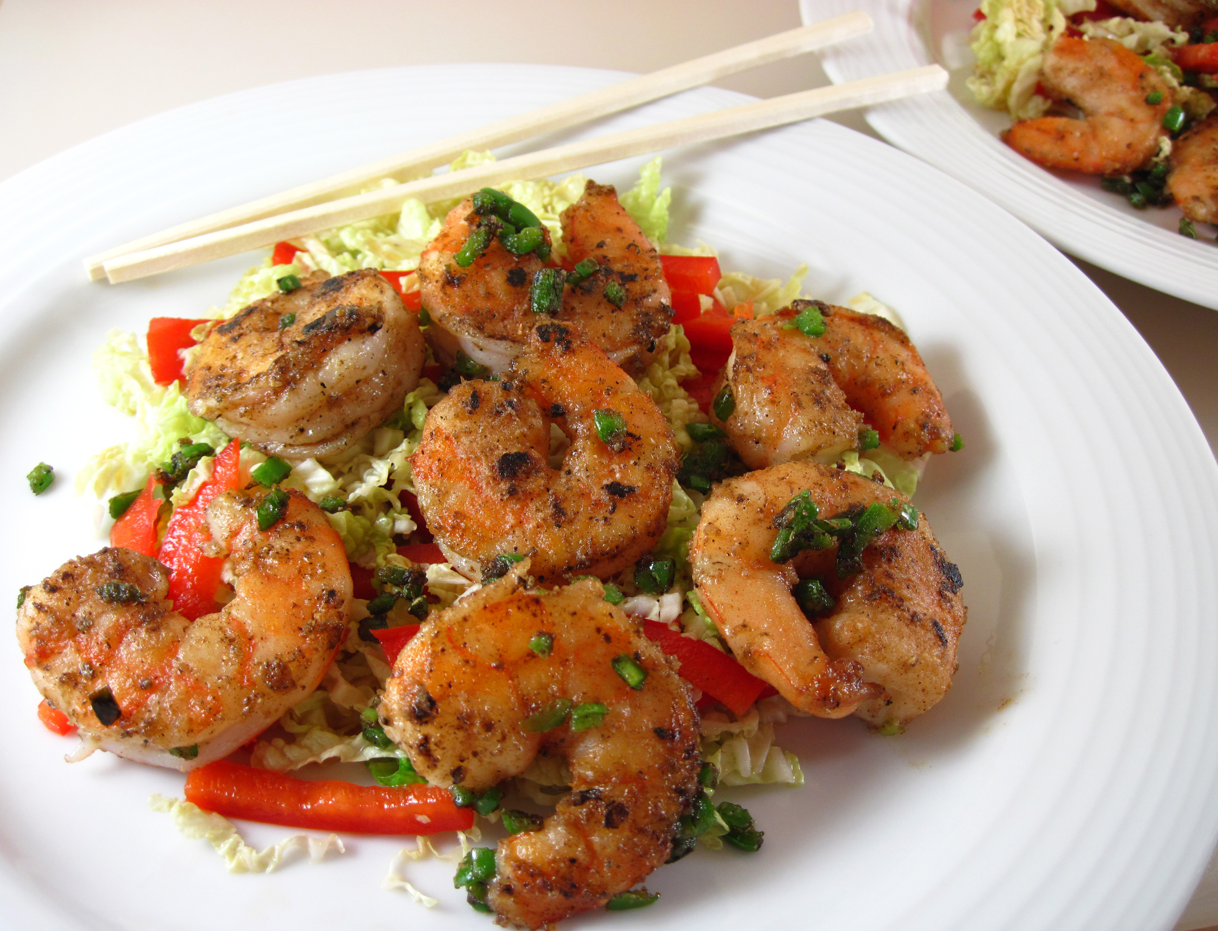 We occasionally go to Sea Garden in the International District when we’re in the mood for good Chinese seafood. I almost always order one of their “salt and pepper” dishes, usually squid or prawns. I never thought about making something like it at home until I saw Eating Well’s recipe for Salt and Pepper Shrimp in Eating Well Serves Two: 150 Healthy in a Hurry Suppers. It looked simple enough, so we gave it a try last night.
