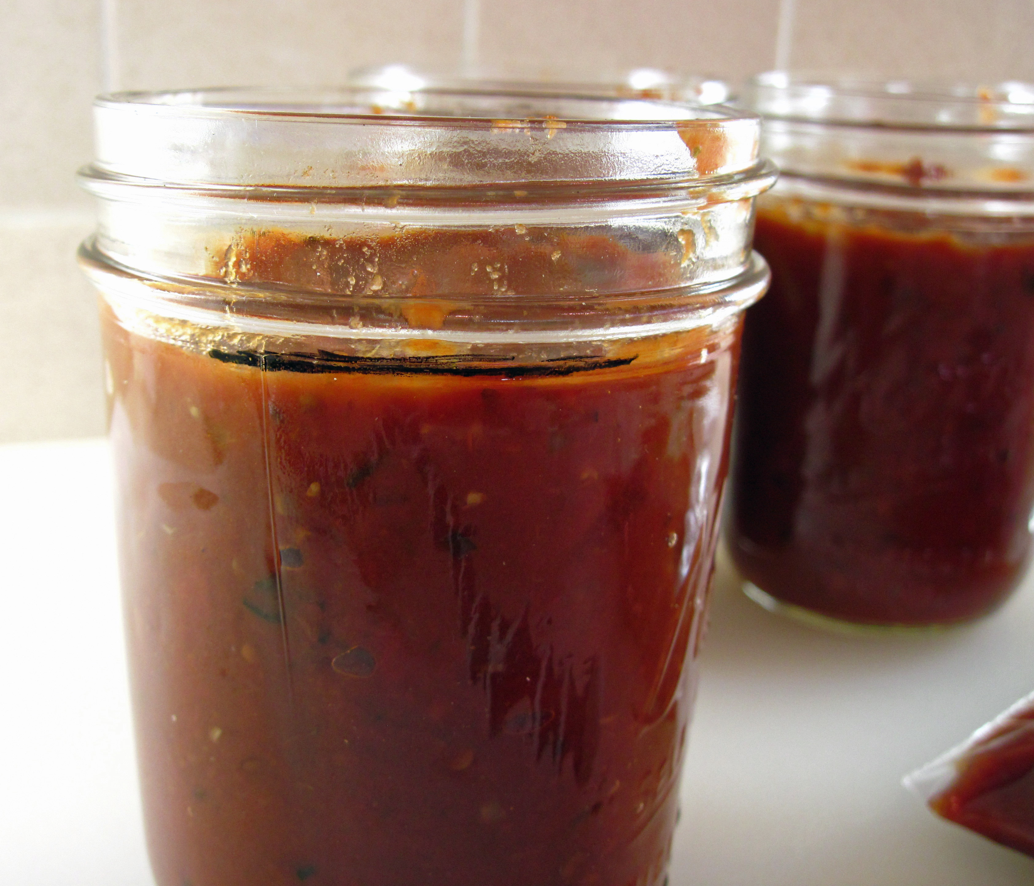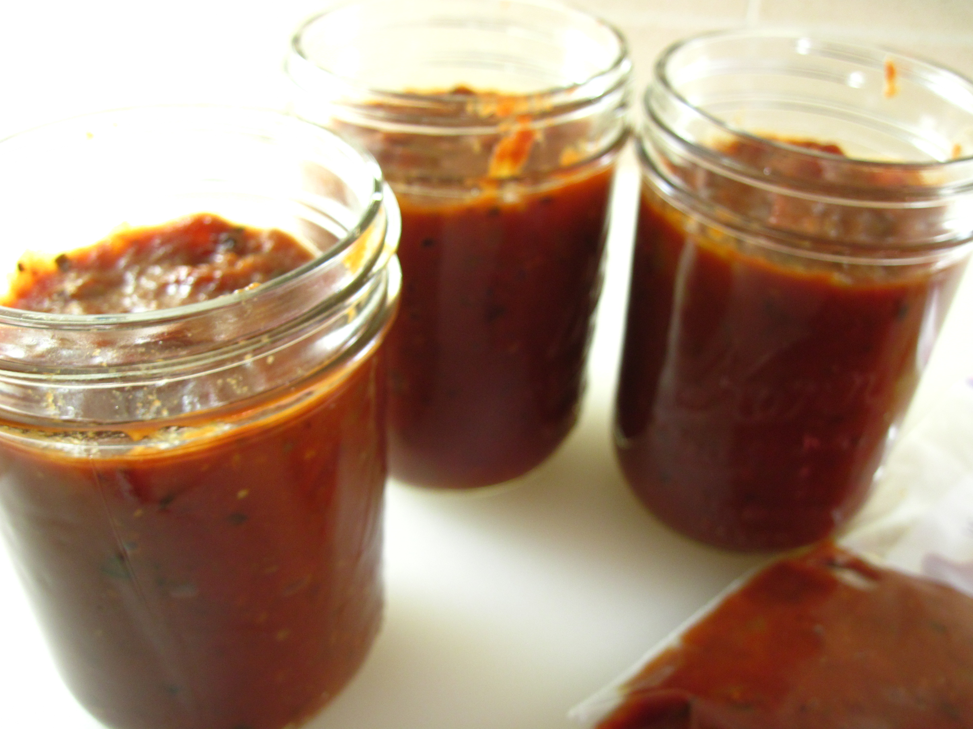 After using some of the sauce on the first night, I refrigerated the leftover sauce. The next day I put it in wide-mouth pint size jars to freeze it.