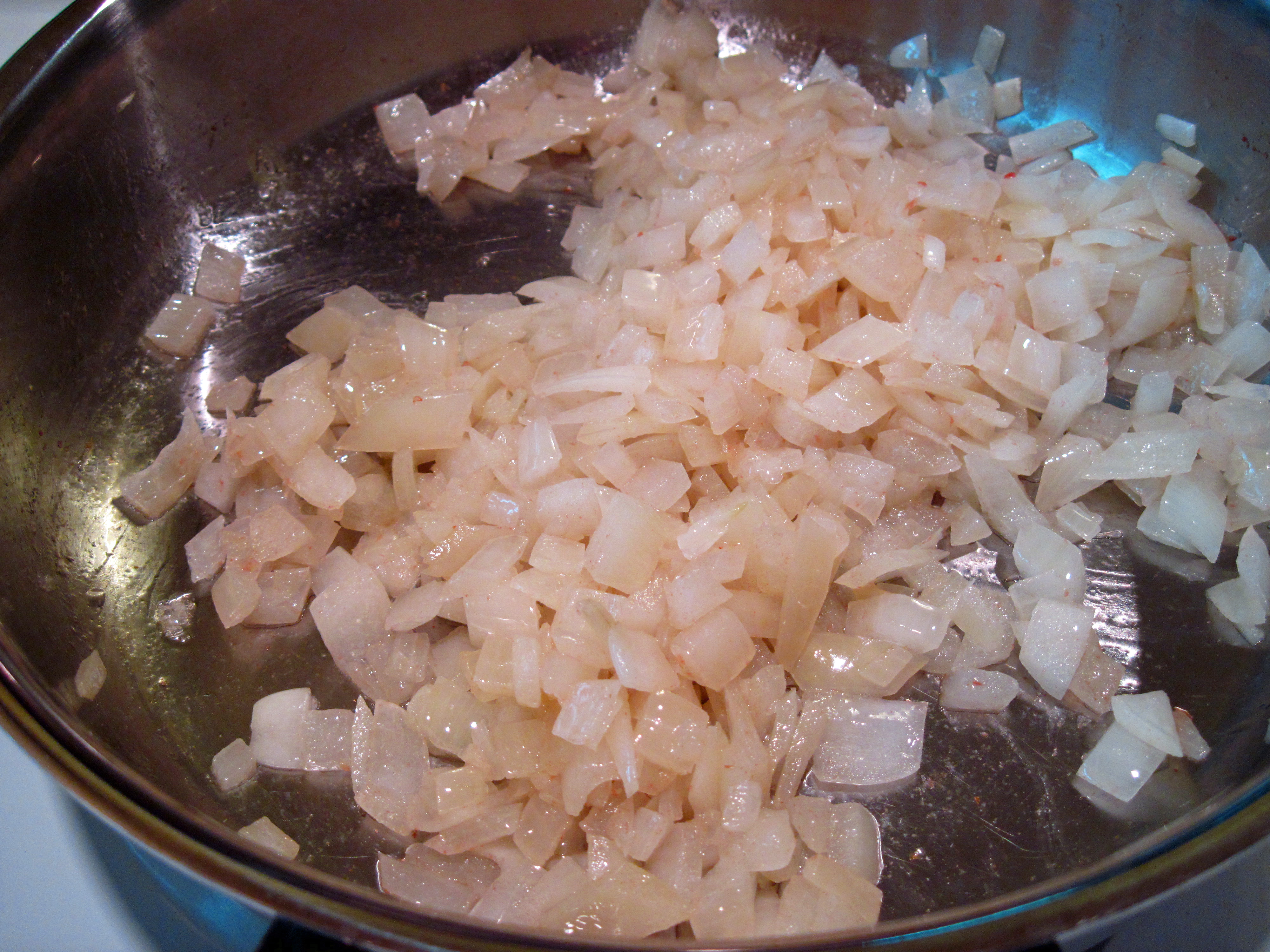1. Heat the oil over low heat in a skillet. Add the onion. Cook, stirring occasionally, until the onion has softened but has not yet started to brown. This will take about 10 minutes.