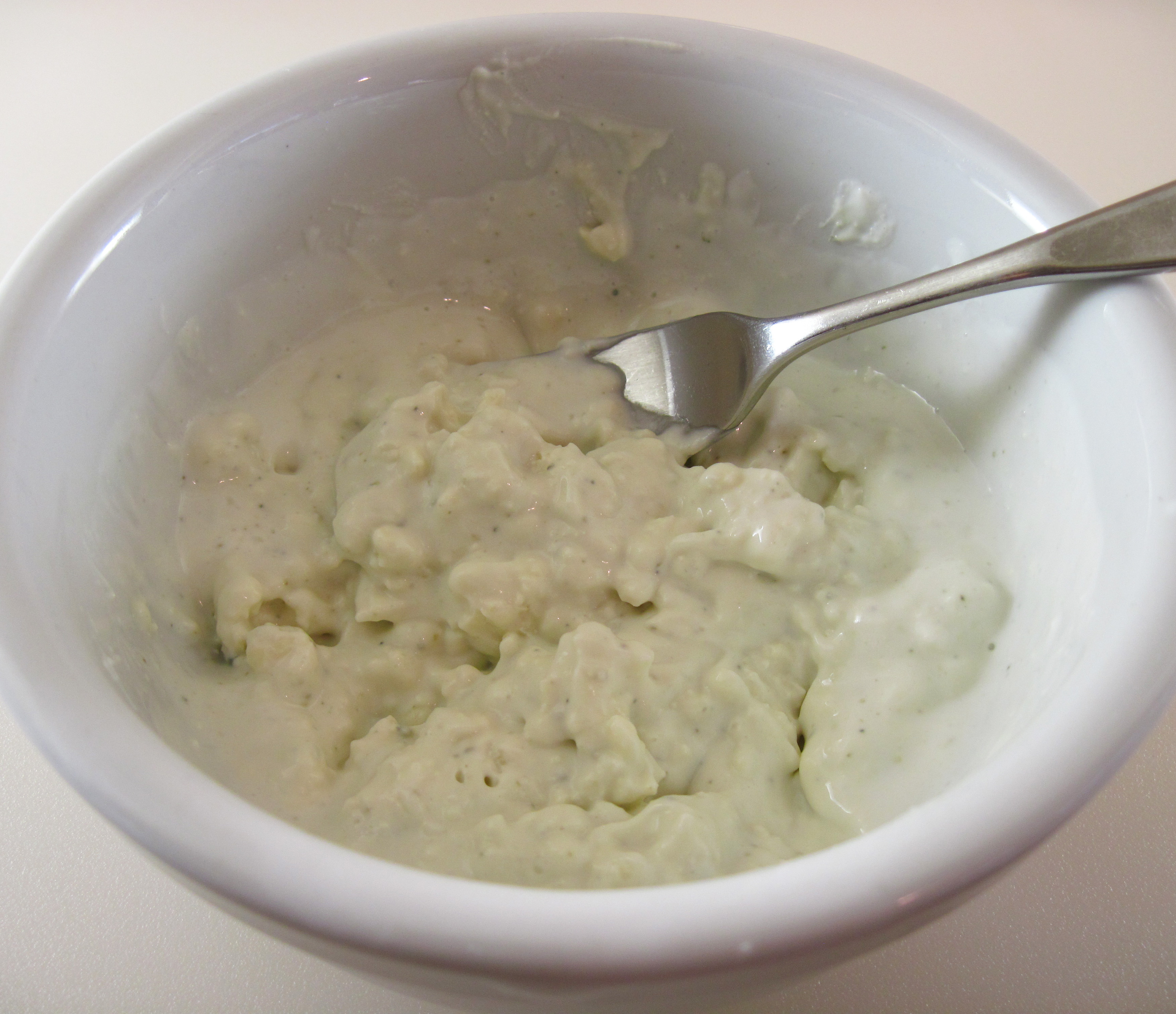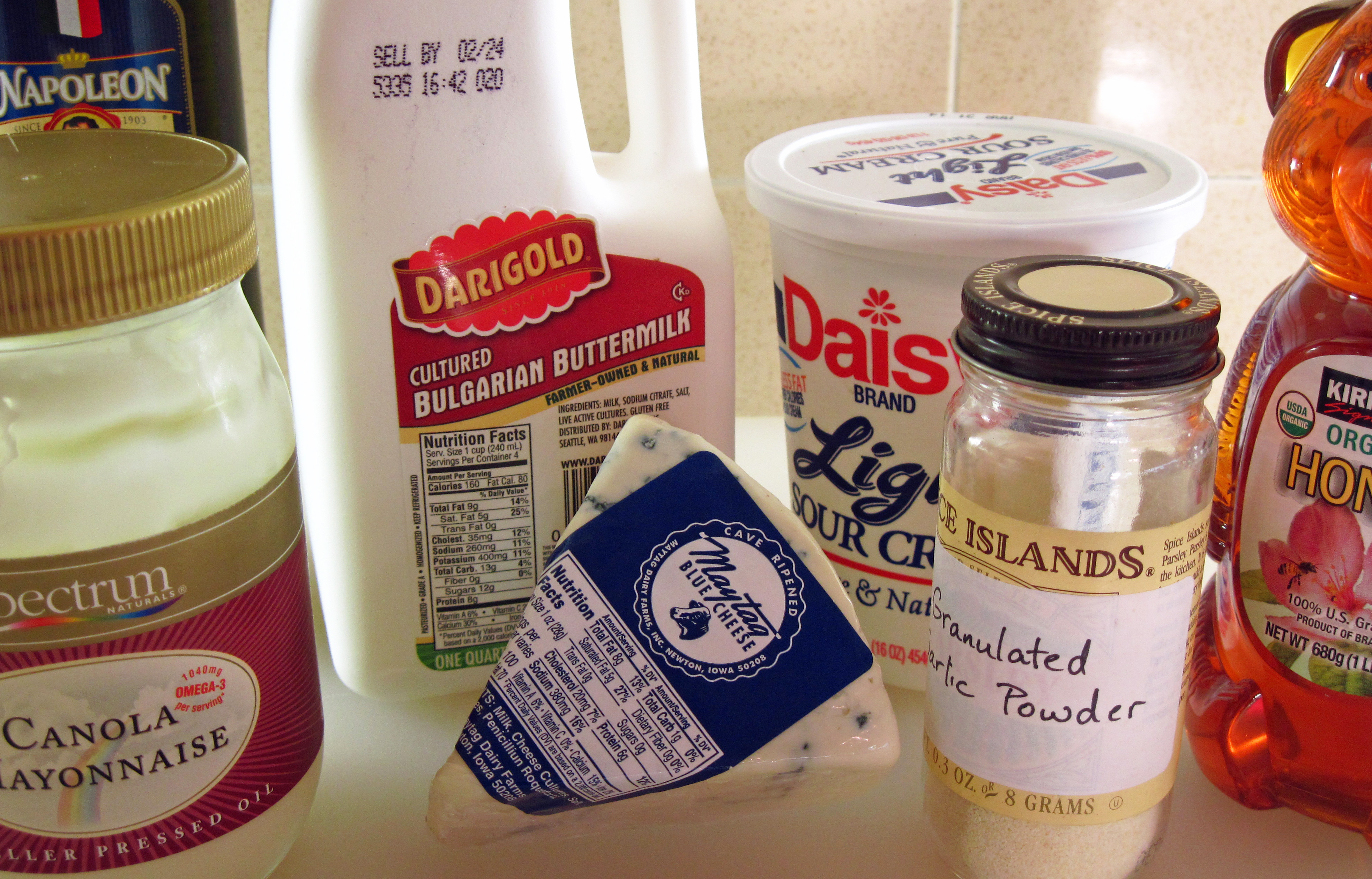 I chose Darigold 3.5% Bulgarian Buttermilk. I’m sure I have used this buttermilk before, but I had forgotten that it is much thicker than the Lowfat Buttermilk that I usually buy. The finished dressing, while absolutely delicious, was a bit thick. It worked well on the lettuce, but it was thick enough to be a dip.