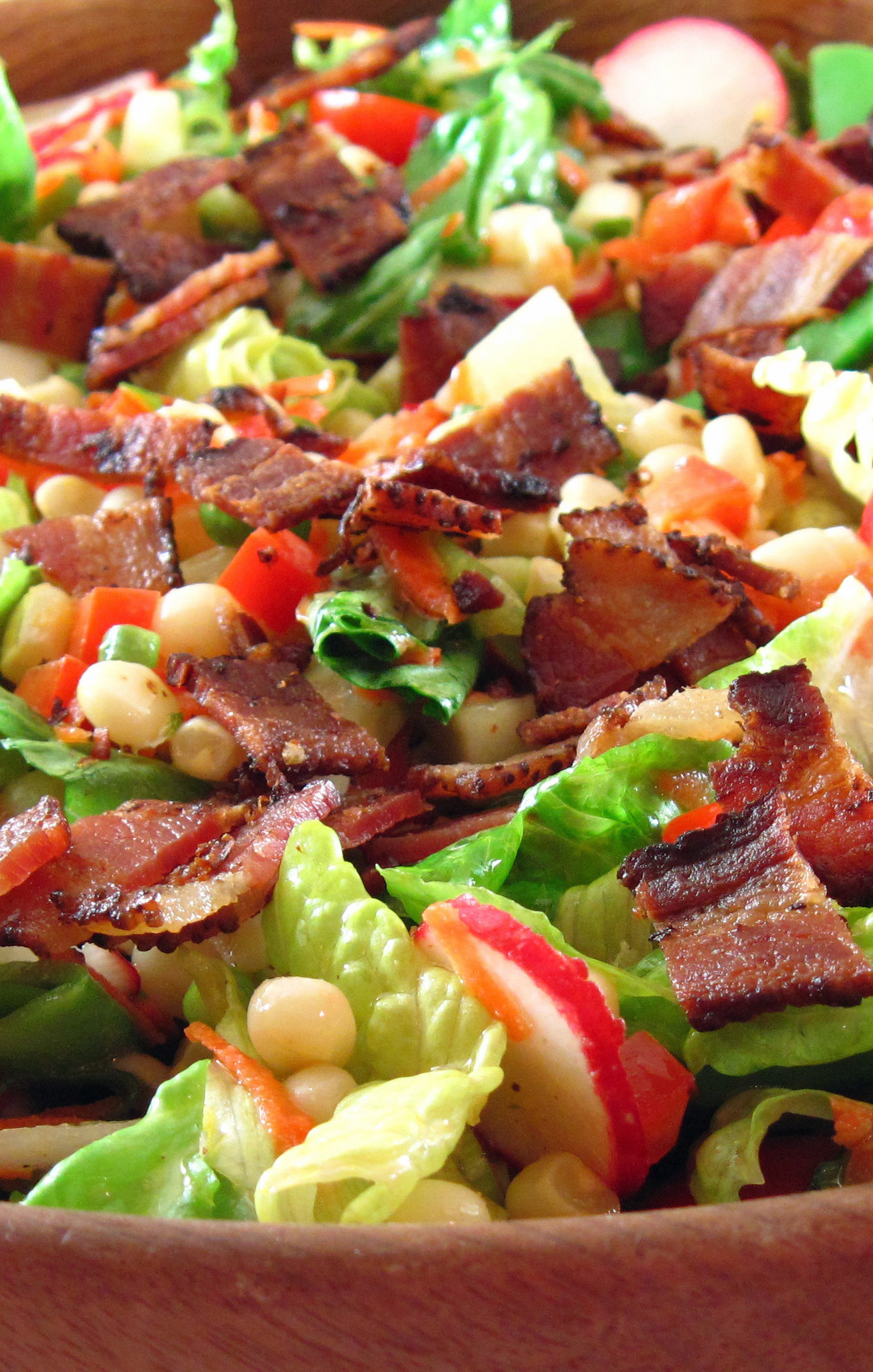 Chop Salad with Corn, Sugar Snap Peas, and Bacon
