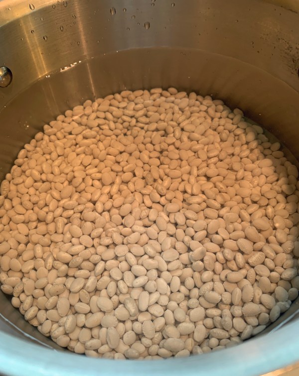 1. First thing in the morning rinse and sort the beans. Put them in a large pot and cover with plenty of water. Cover and let them soak for 8 -10 hours.