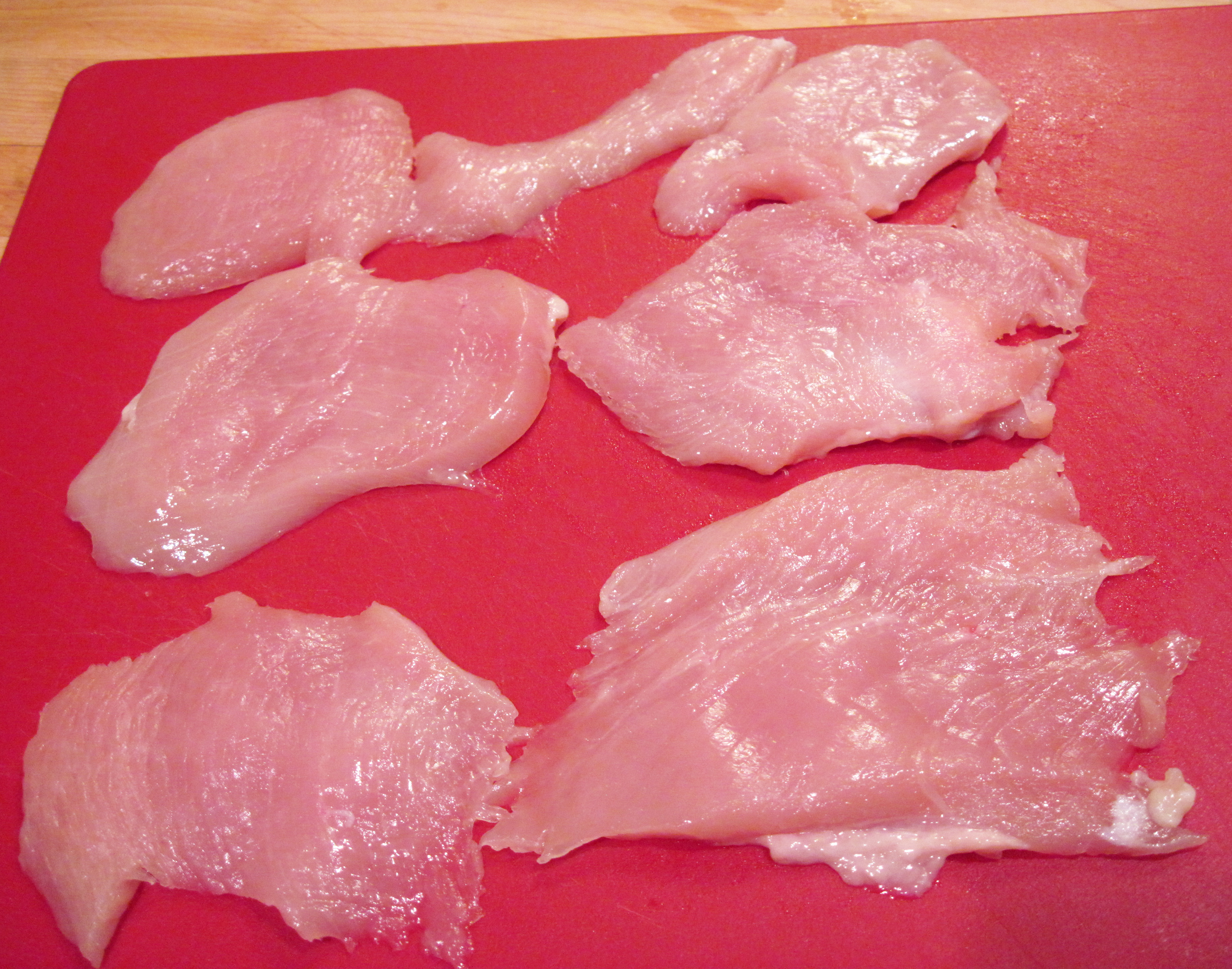 This is one large 8-ounce chicken breast cut into thin horizontal slices.