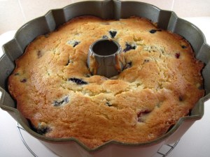 Summer Berry Buttermilk Bundt Cake is a great dessert to share at a party. I find people usually don’t want a huge piece of cake after indulging in all of the savory offerings at a potluck party, especially if there’s more than one dessert available. A Bundt cake, cut in thin slices can easily serve 18 – 20 people. This cake was especially good on the 4th of July served with our friends’ delicious homemade vanilla ice cream!