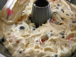 9. Gently stir the berries into the cake batter.