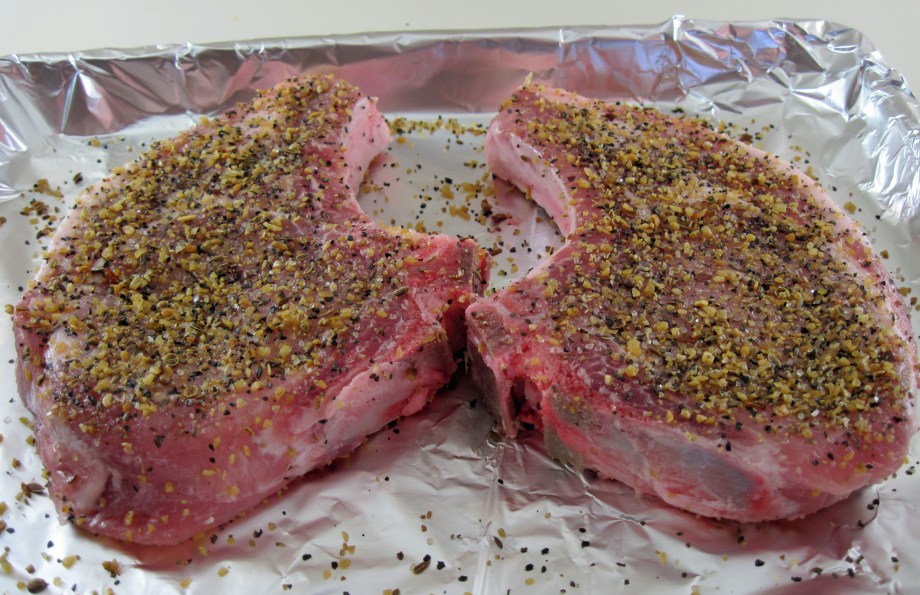 Pork chops ready to pan fry